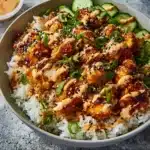 This Bang Bang Chicken Bowl stands beautifully on its own, but you can jazz it up even more! Serve it with a side of crispy spring rolls or an easy cucumber salad to add more crunch. If you want to create a full feast, pair it with an Asian-inspired soup, like miso or hot and sour. Add an extra touch by drizzling some extra sweet chili sauce on top before serving; it complements the dish perfectly!