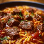 Add the Orzo Pasta: Once the beef is tender, stir in the orzo pasta. Continue to cook until the pasta reaches al dente, soaking up all the savory broth.