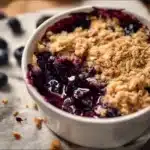 A warm and comforting blueberry crisp topped with a buttery crumble, perfect for cozy nights or sweet surprises.