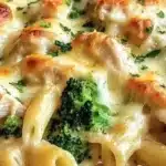 A creamy and cheesy Chicken Alfredo Pasta Bake that’s perfect for family dinners and gatherings.