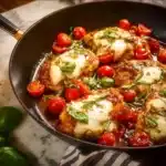 A quick and delicious Chicken Caprese Skillet with juicy chicken, fresh tomatoes, and pesto, perfect for busy weeknights.