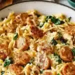 Keywords: chicken sausage, orzo, creamy pasta, one-pan meal, easy dinner