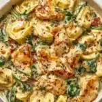 This dish stands beautifully on its own, but you can elevate the experience with a few simple additions. Serve it with a crisp Caesar salad or a garlic bread on the side for a fully rounded meal. If you want to add some color and freshness, sprinkle freshly chopped parsley on top. For an extra kick, serve it with a side of roasted vegetables. The creamy tortellini pairs wonderfully with bright, crunchy sides!