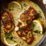 A comforting dish featuring succulent chicken in a creamy Parmesan lemon sauce, perfect for weeknight dinners.