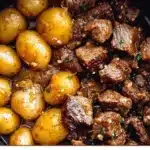 A warm, hearty dish featuring tender beef, roasted baby potatoes, and savory garlic butter that’s great for family gatherings.