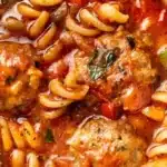 A warm and comforting Italian soup featuring savory meatballs, rich broth, and fresh vegetables, perfect for busy weeknights.