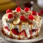 Picture a warm afternoon, surrounded by family and friends, laughter filling the air, and a dessert that steals the show! That’s what No Bake Banana Split Cake delivers. It’s a delightful dessert that combines the flavors of a classic banana split in a simple, creative way. The first time I made it, I was immediately smitten by how easy it was to prepare. With no oven required, this cake brings together the nostalgia of childhood treats with a modern twist. Perfect for summertime gatherings, potlucks, or just a sweet indulgence, you’ll find this cake is sure to bring smiles to everyone’s faces.