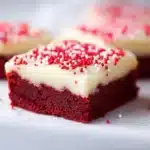 Delicious Red Velvet Cookie Bars topped with creamy cream cheese frosting, perfect for any occasion.