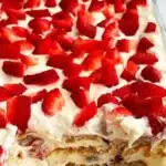 This recipe is also super quick and easy, taking only about 30 minutes of hands-on time (not counting chilling). You don’t need elaborate tools or techniques—just a mixing bowl, a whisk, and a 9×13 dish to assemble it all. Plus, it’s budget-friendly! With just a handful of ingredients, you can create something that looks and tastes like a million bucks. And let’s be honest, kids love it! Each layer of strawberry and whipped cream is a joy to eat, making this treat a hit at birthday parties, picnics, or even quiet weekends at home.
