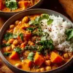 Warm up with this hearty Sweet Potato and Chickpea Curry filled with comforting spices and creamy coconut milk.