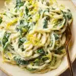 Making this pasta is a delightful experience. You’ll find that the process is straightforward and quick, so you won’t spend hours in the kitchen. It takes about 20 minutes from start to finish, which is perfect for those who want to enjoy a home-cooked meal without all the fuss. You only need a few basic tools: a pot for boiling your pasta and a skillet for sautéing the spinach. That’s it! Get ready for a flavorful adventure that’s as easy as it is tasty.